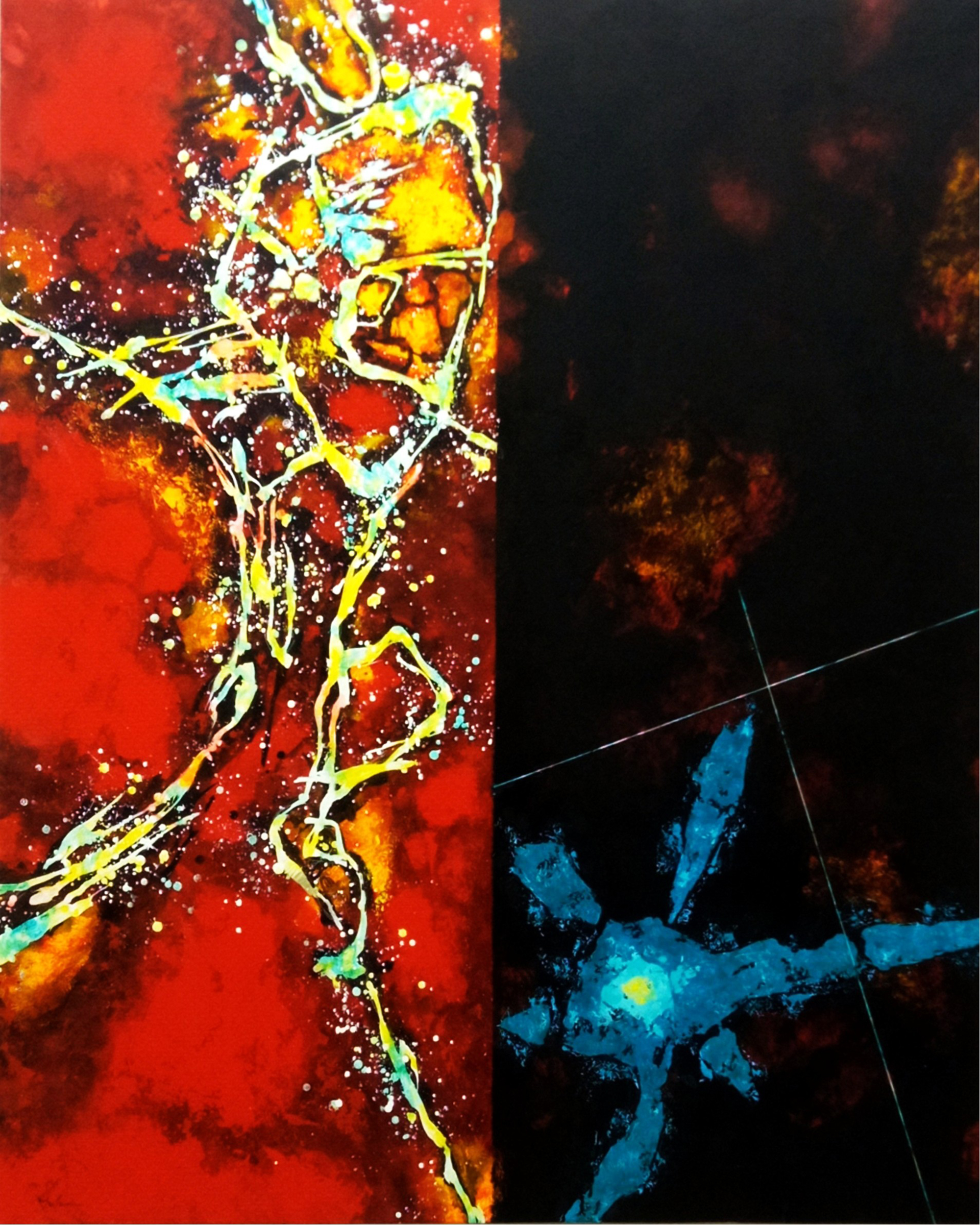 「壊れかけた太陽」 和紙・アクリル・墨 91×71.7㎝ 2005年 作品番号1-10 |